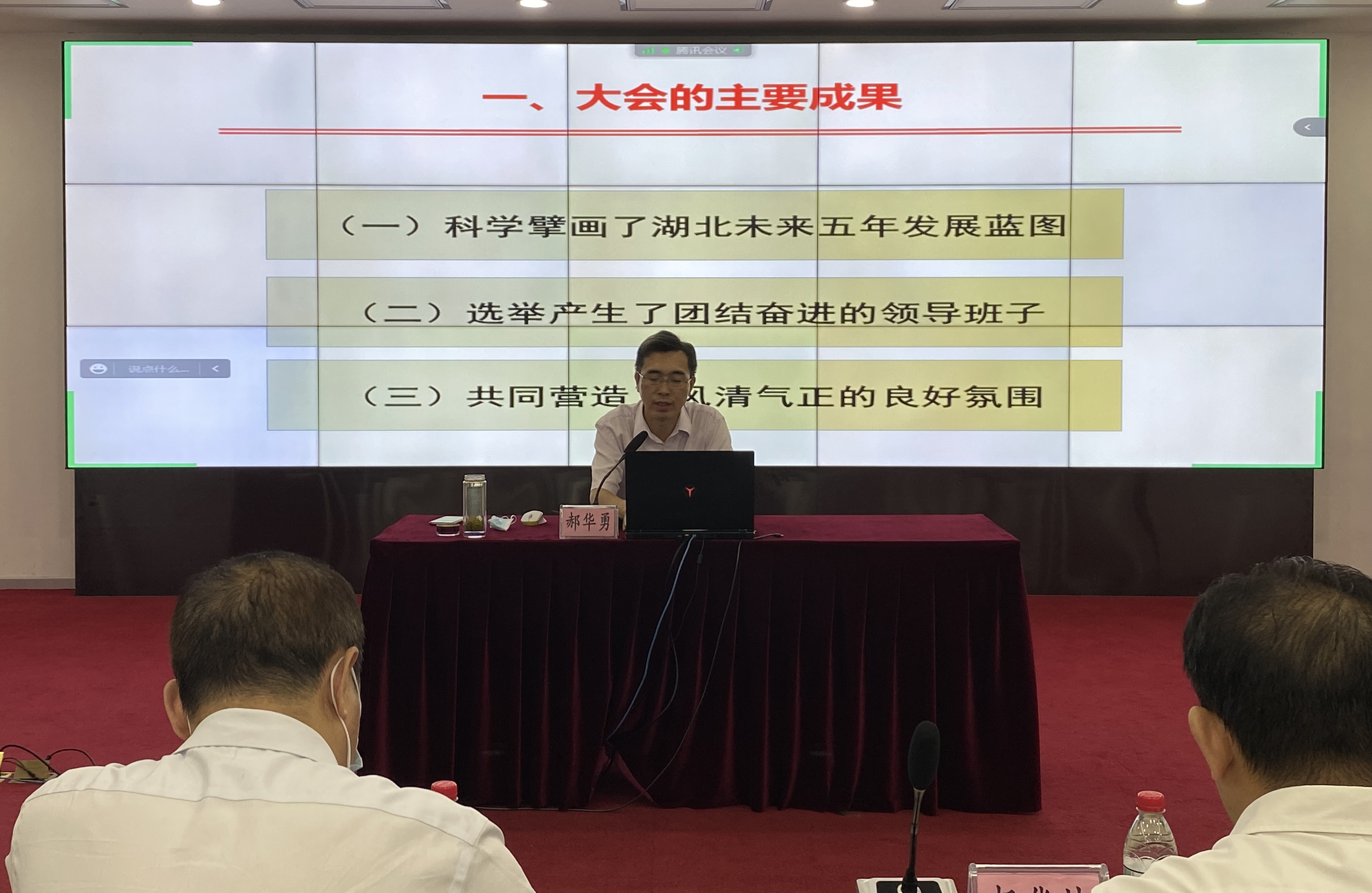 郝华勇教授以“建设先行区 奋进新征程”为题,从“大会主要成果”“报告主要精神”“落实部署任务”三大方面,深刻诠释了习近平总书记考察湖北重要讲话精神的核心要义、丰富内涵,全面解读了省第十二次党代会确定的目标任务、重大举措,并强调了意识形态工作的极端重要性。