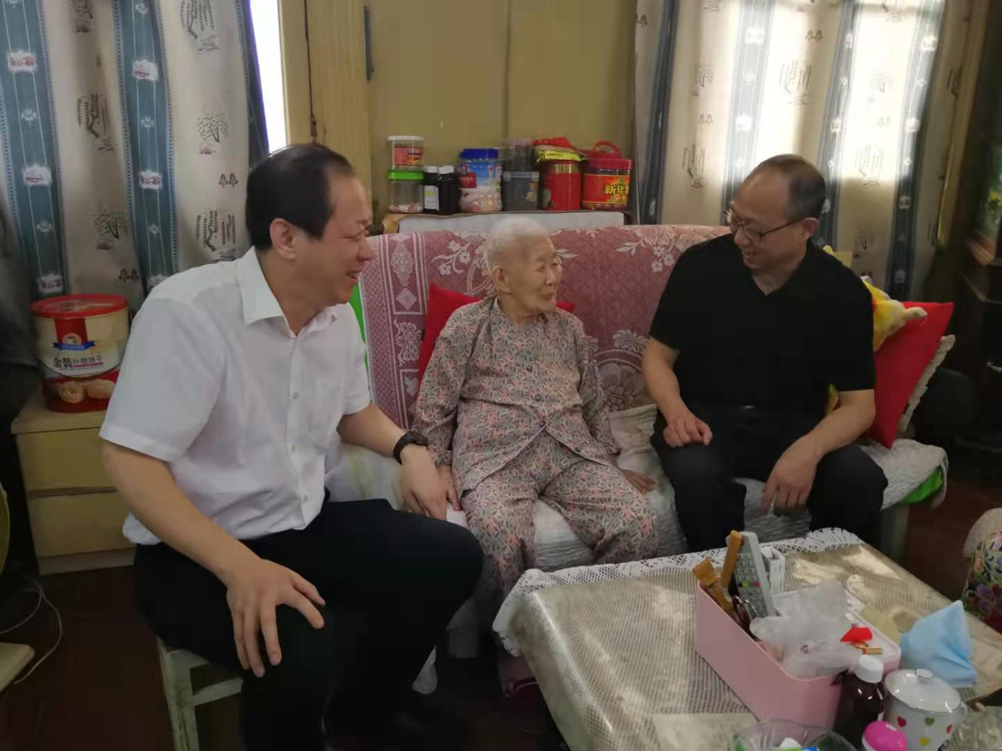 6月23日,在党的百年华诞即将到来之际,鄂旅投集团党委副书记、副总经理陈华志走访慰问粮油集团“光荣在党50周年”老党员谢淑银,向老党员致以节日的问候和祝福,粮油集团党委书记、董事长周勇陪同。