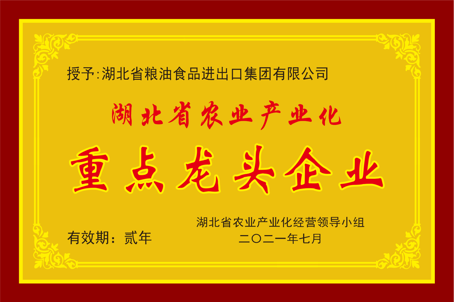 近日,湖北省农业产业化经营领导小组公布“2021年湖北省农业产业化重点龙头企业名单”,湖北省粮油食品进出口集团有限公司及旗下金旭农发、金牛科技公司榜上有名。