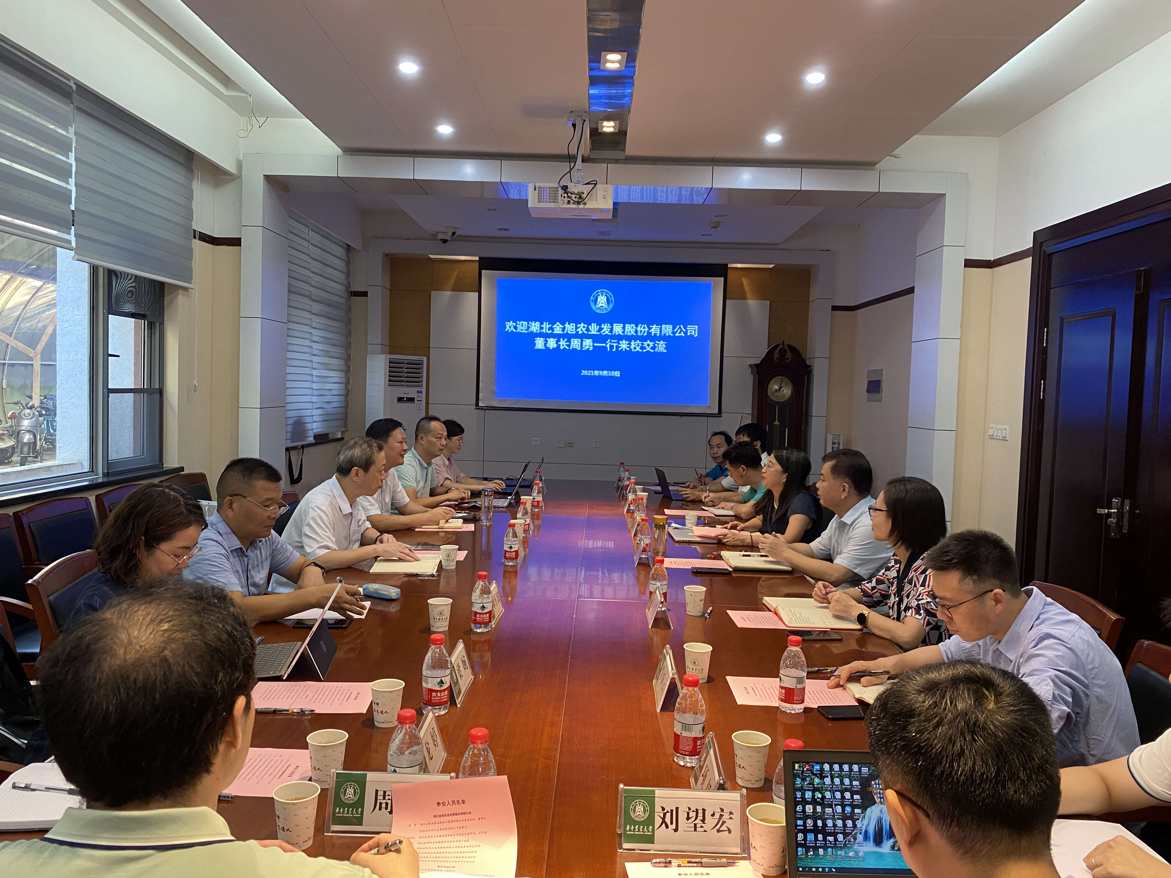 2021年9月10日上午,粮油集团党委书记、董事长、金旭农发董事长周勇带队前往华中农业大学沟通联合育种工作。华中农业大学党委副书记、副校长姚江林及有关负责人参加座谈交流。