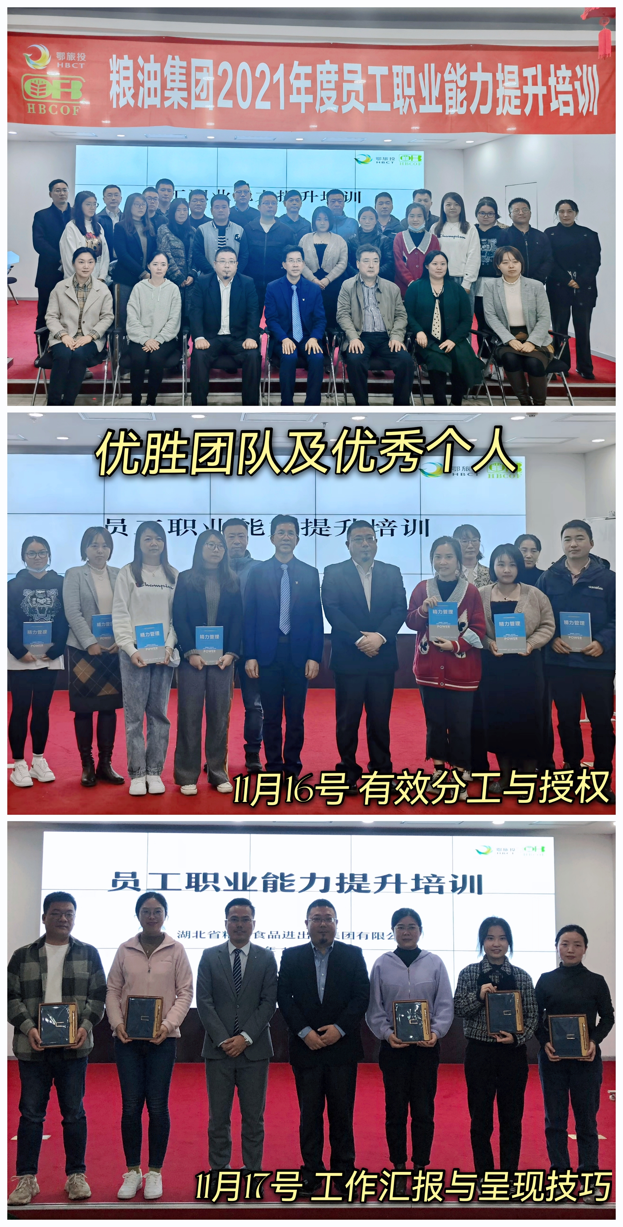 11月16-17日,粮油集团举办2021年度员工职业能力提升培训,集团党委委员、副总经理张辉出席并作开班讲话。