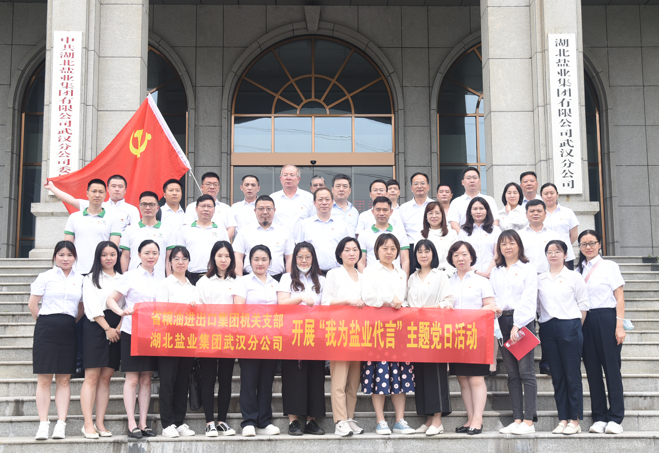 5月27日上午,省粮油进出口集团联合湖北盐业集团武汉分公司开展“我为盐业代言”主题党日活动,省粮油进出口集团党委班子成员、机关支部全体党员及子公司党组织书记,湖北盐业集团武汉分公司全体党员共计50余人参加活动。
