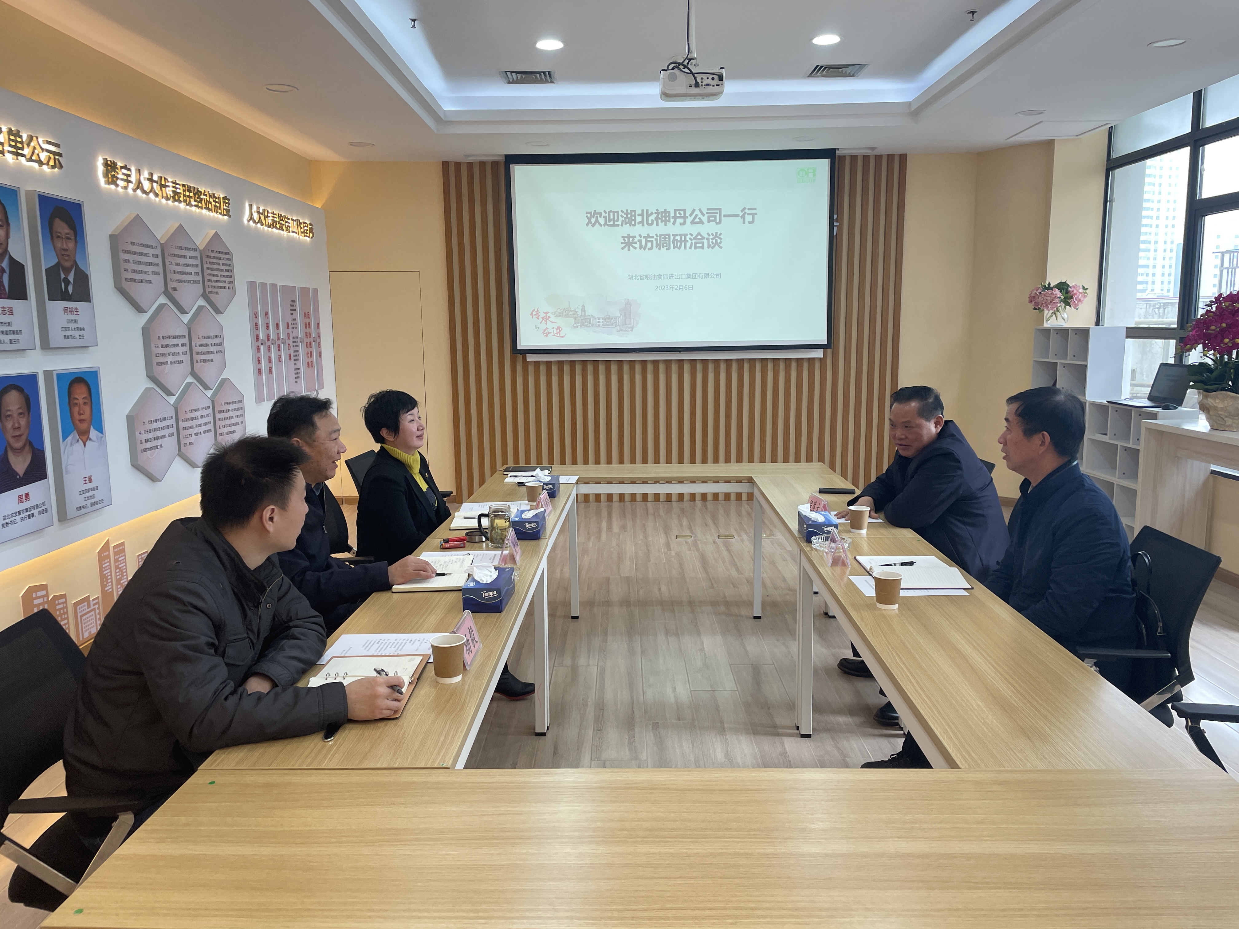 2月6日上午,湖北神丹健康食品有限公司董事长一行赴省粮油进出口集团会见了党委书记、董事长孟华,双方就粮食物流、海外贸易、农产品供应等方面进行座谈交流,省粮油进出口集团总经理助理、农发生物科技董事长代静芳参加会谈。