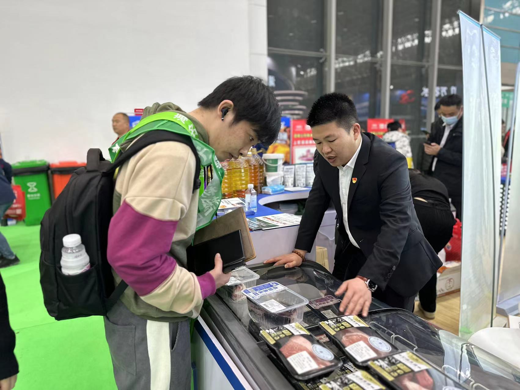 活动现场,党员们作为推广员参加2023年第十一届中国食材电商节,向客户推荐十种集团旗下好福牌产品,其中蛋品、水产和黑猪肉特别受客户的青睐。为让客户切实体验到产品美味,党员们现场架起炉灶,做起凉拌皮蛋、烤五花肉等菜品吸引客户,消费者络绎不绝,通过试吃品鉴、业务洽谈、产品展示等多元化的区域设置,为客户带来了一场视觉、嗅觉、味觉的全方位沉浸式体验。