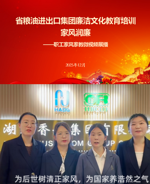 “家风正则民风淳,家风清则政风廉。”省粮油进出口集团深刻把握家风建设与廉洁文化建设的内在联系,各级党员干部带头廉洁修身、廉洁齐家,弘扬清正家风,带动社风民风。以“家风润廉”为抓手,开展职工家风家教微视频征集和展播,鼓励干部职工及其家庭成员围绕孝老爱亲、勤俭节约、廉洁齐家、遵纪守法等主题,用镜头记录和讲述家风故事、家规家训。在企业内部展播《传承家风》《家是最小国》《家风颂》等职工视频作品,扩大宣传覆盖面和影响力,引导全体员工注重家庭、注重家教、注重家风,让廉洁理念从企业延伸到家庭,从职业操守拓展到生活品行,形成“以家护廉、以廉兴家”的良性互动,构建“企业+家庭”双向监督的廉洁防线。