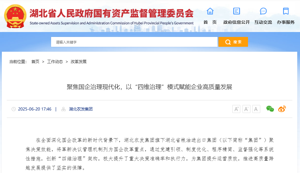 湖北省国资委:聚焦国企治理现代化,以“四维治理”模式赋能企业高质量发展