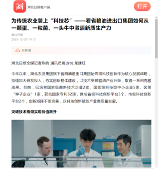 湖北日报:为传统农业装上“科技芯”——看省粮油进出口集团如何从一颗蛋、一粒菌、一头牛中激活新质生产力